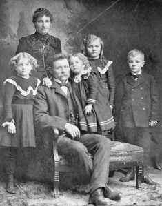 Photo (1902) shows the Danish side of my family, the Johnsons.  The little girl resting her cheek against her father’s is my grandmother Rose.